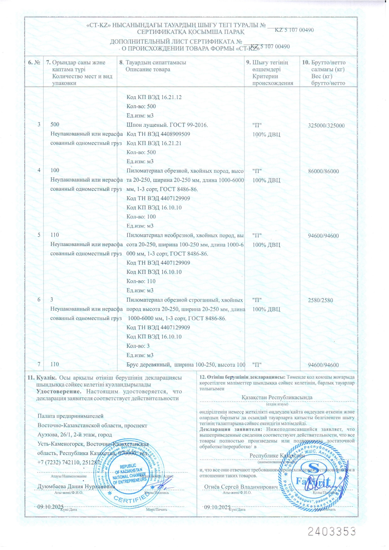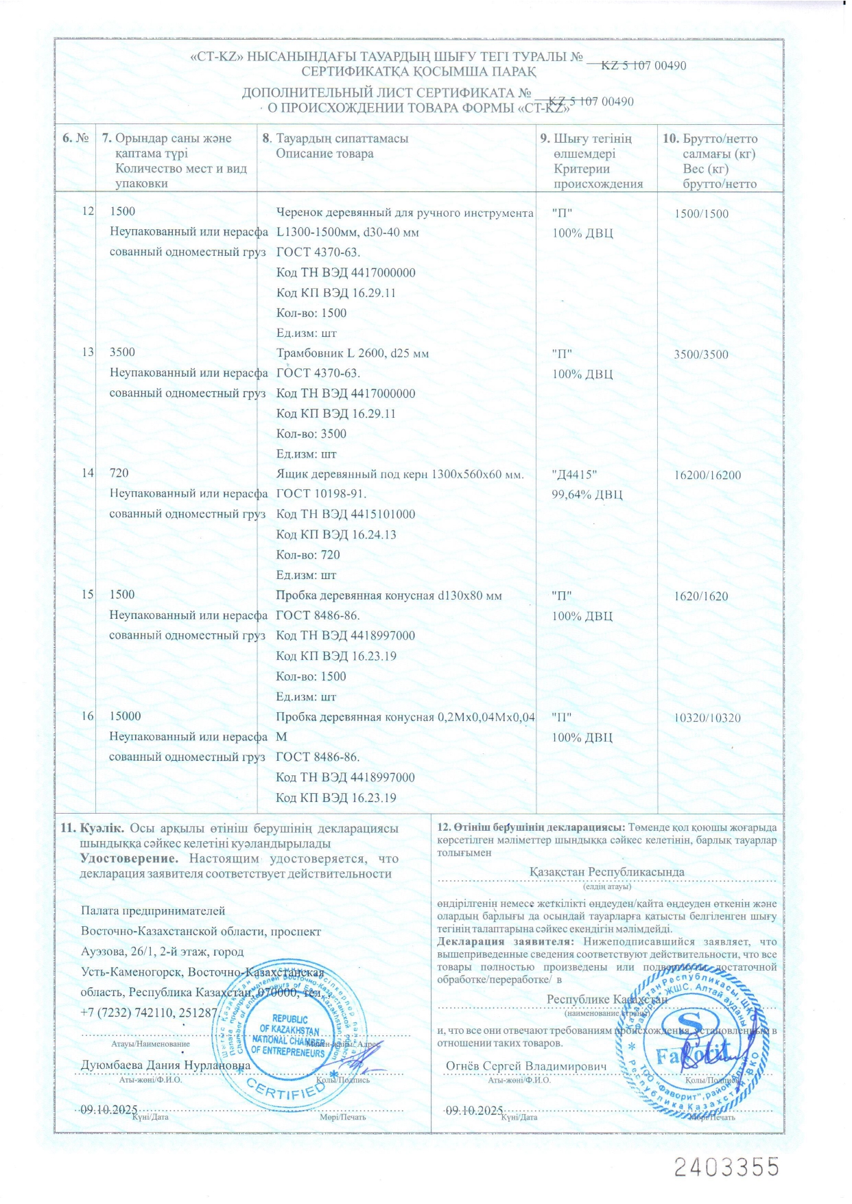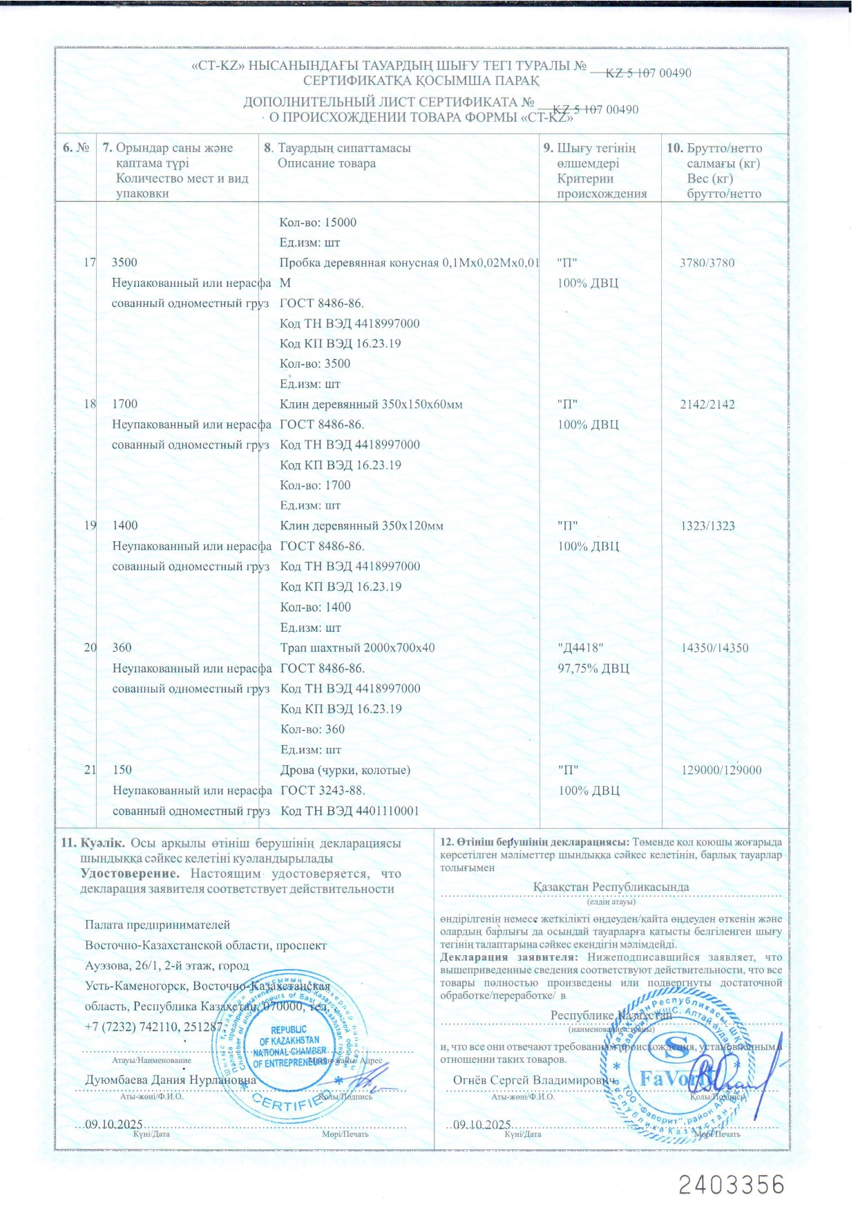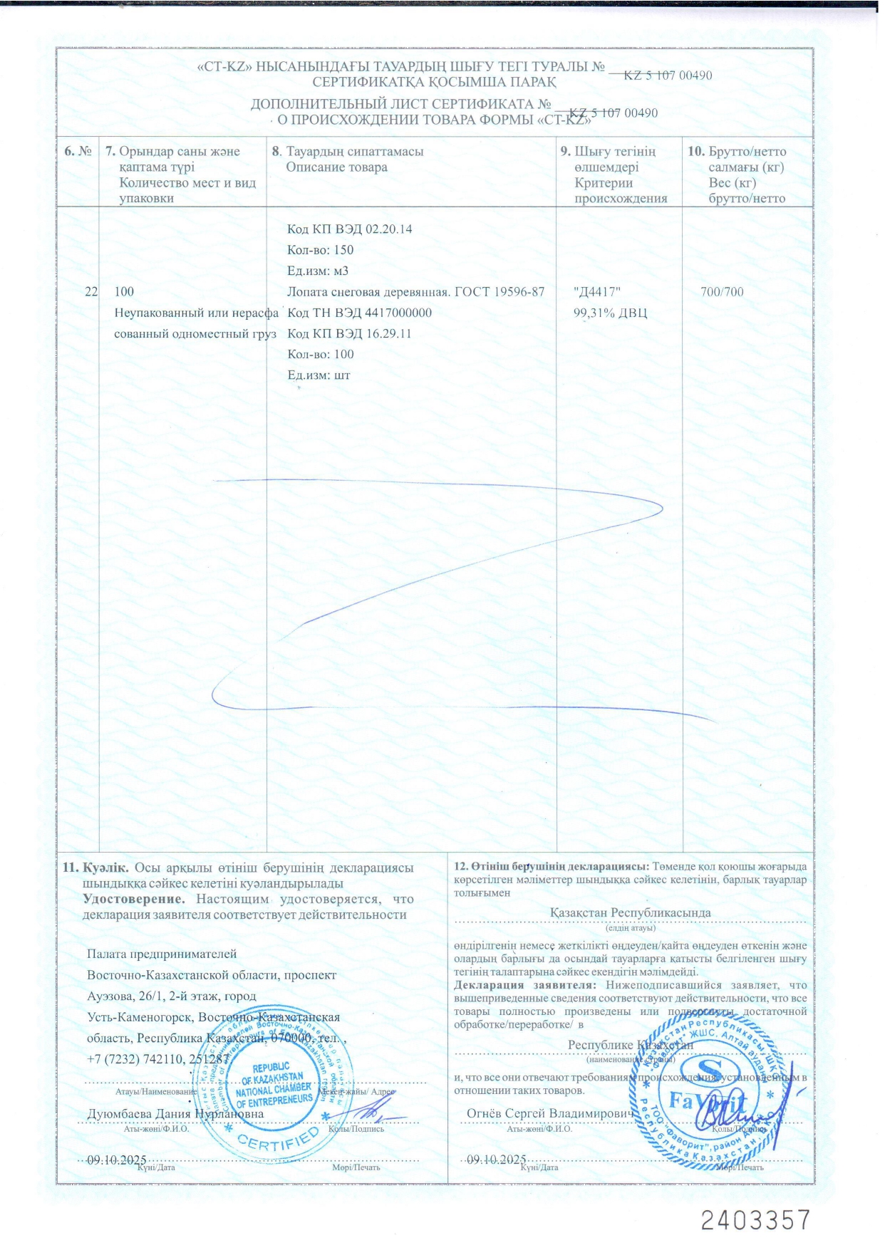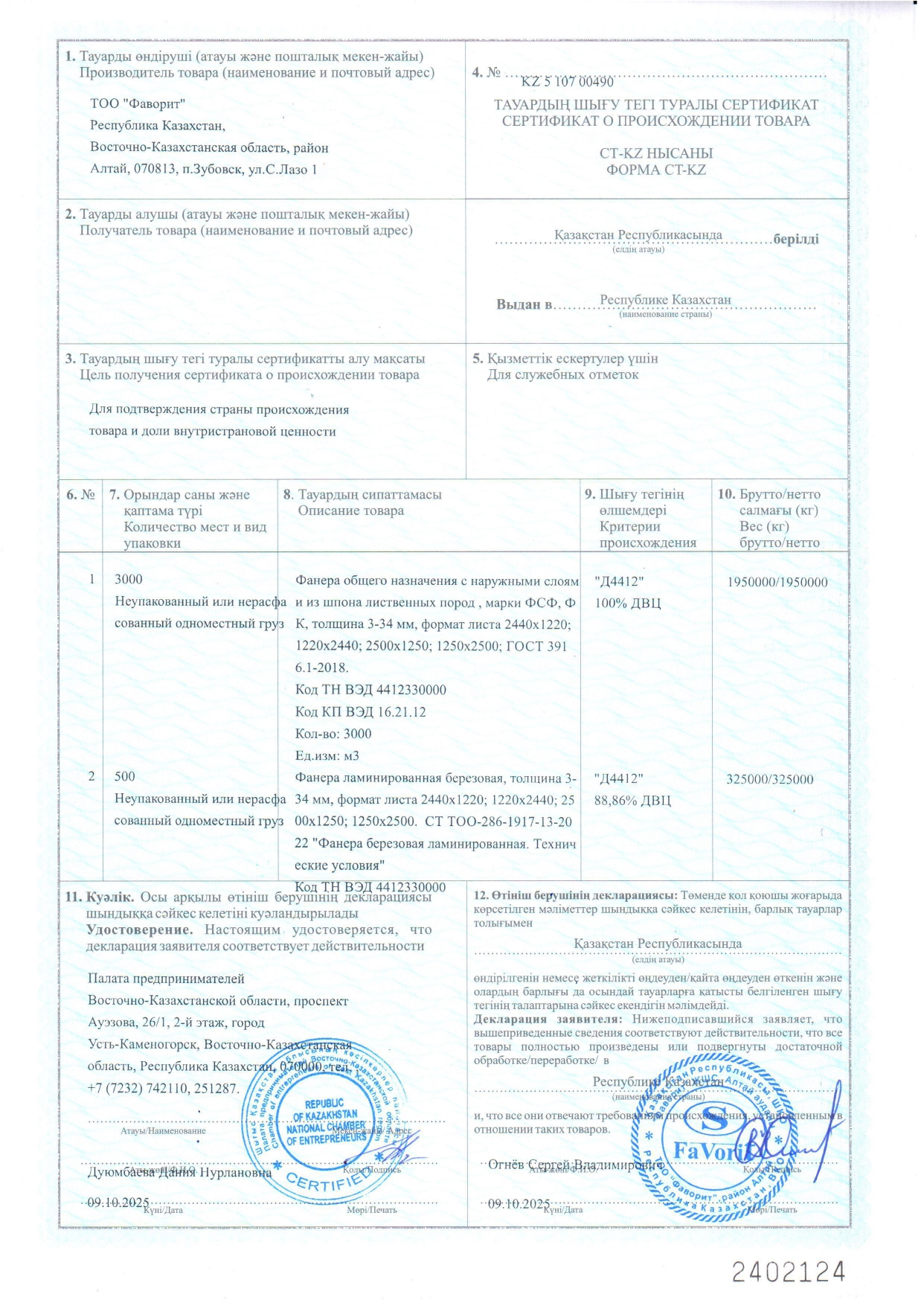 Индустриальный сертификат подтверждает то, что ТОО "Фаворит" является реальным производителем